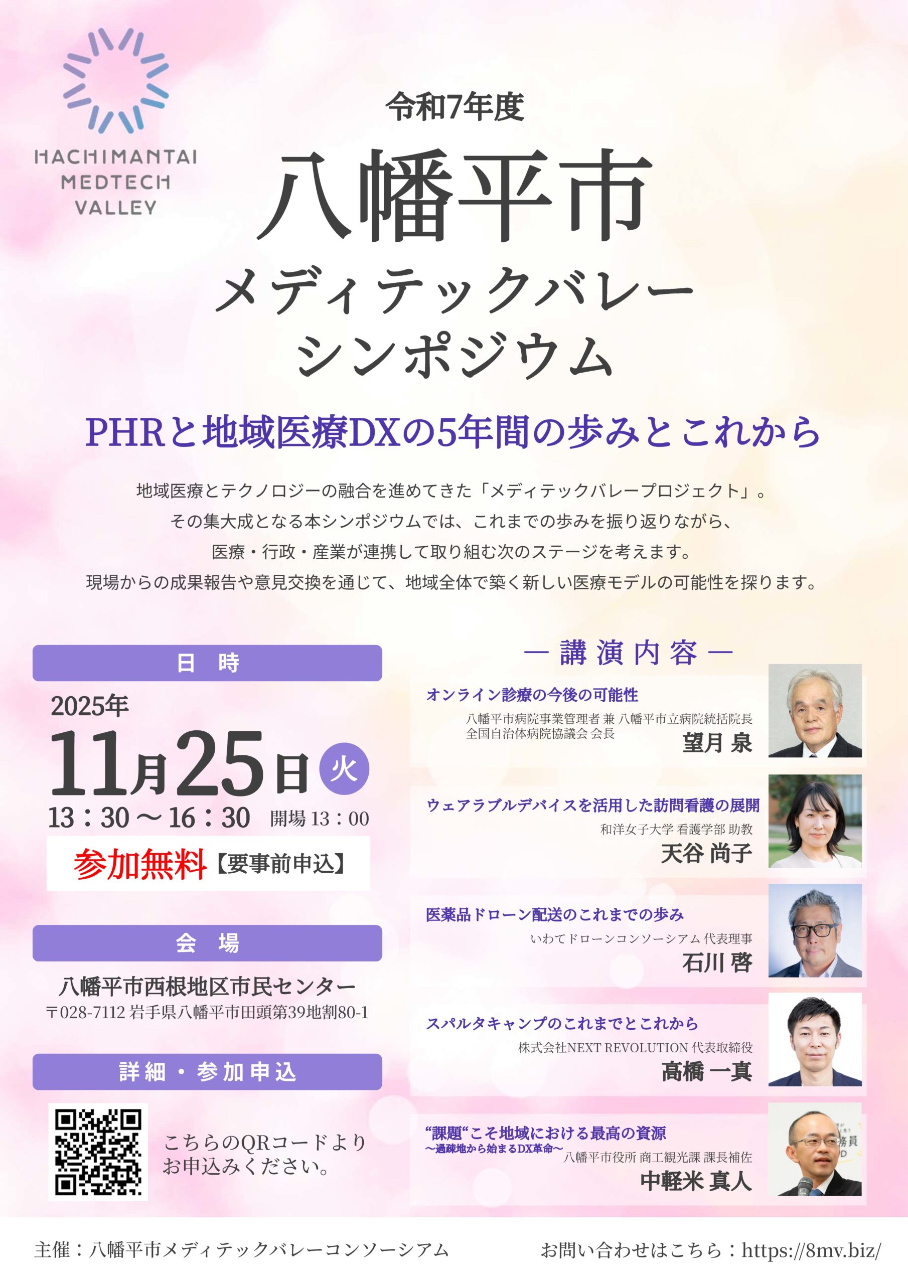 2025/11/25(火) 八幡平市西根地区市民センターにて「令和7年度 八幡平市メディテックバレー シンポジウム」開催 主催:八幡平市メディテックバレーコンソーシアム タグ:オンライン診療ドローン配送八幡平市医薬品配送